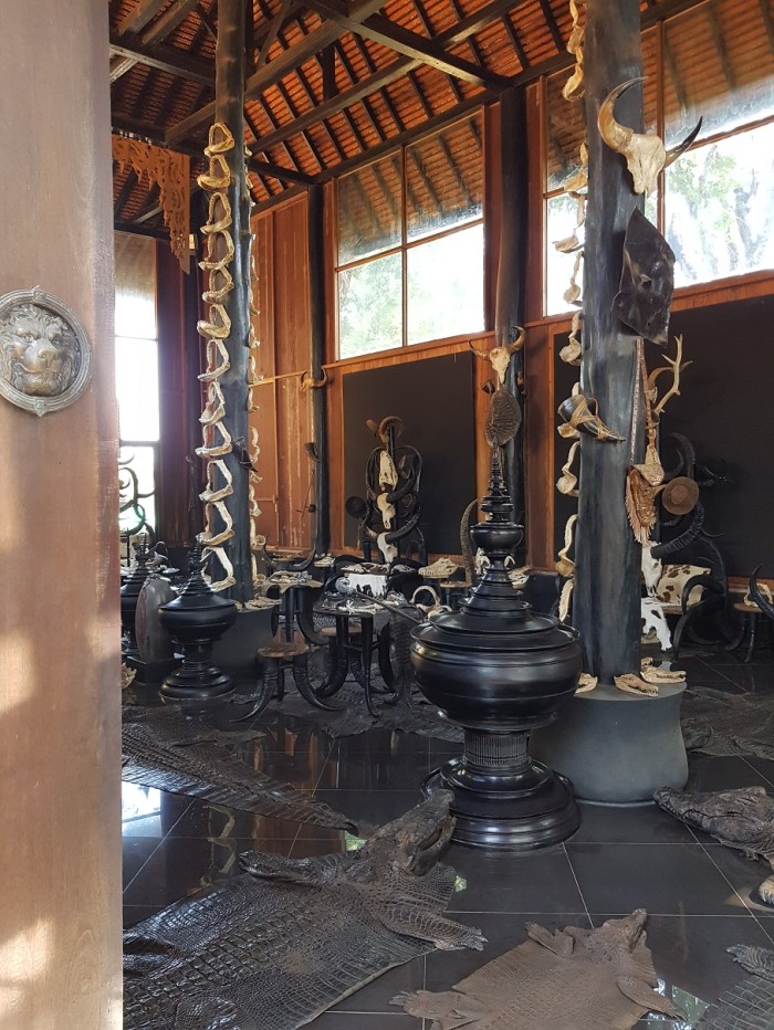 Y llega el momento de hablar quizá de su contraposición no buscada, que es la Casa Negra o Museo ‘Baan Dam’. Este Museo lo forman diversas edificaciones en Madera, conteniendo algunas de ellas Animales Disecados, así como Pieles.